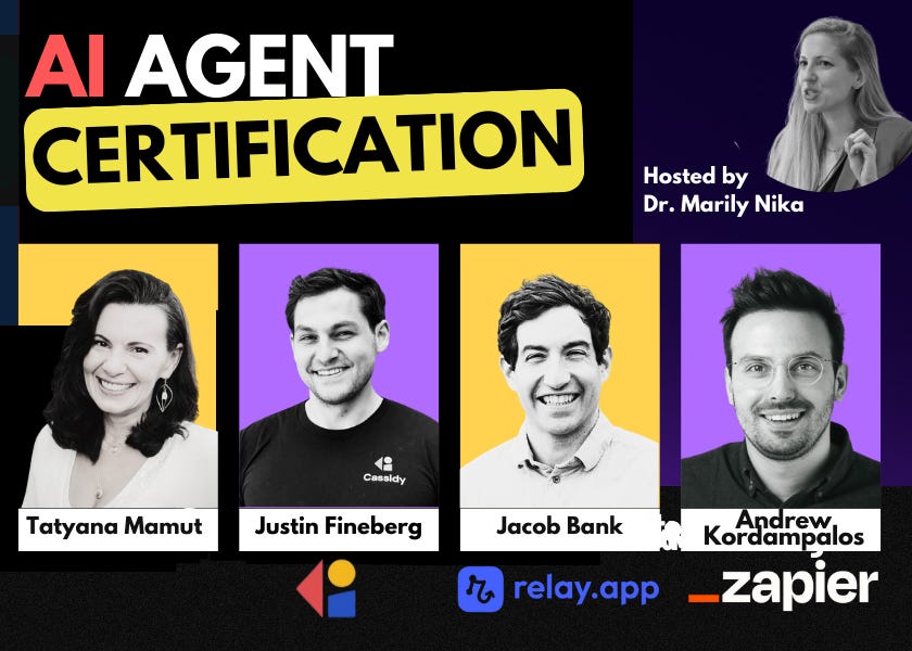 An extremely practical Agentic Bootcamp. Build 5 real no-code product agents. Led by Relay, Wayfound, Cassidy & Zapier executives.