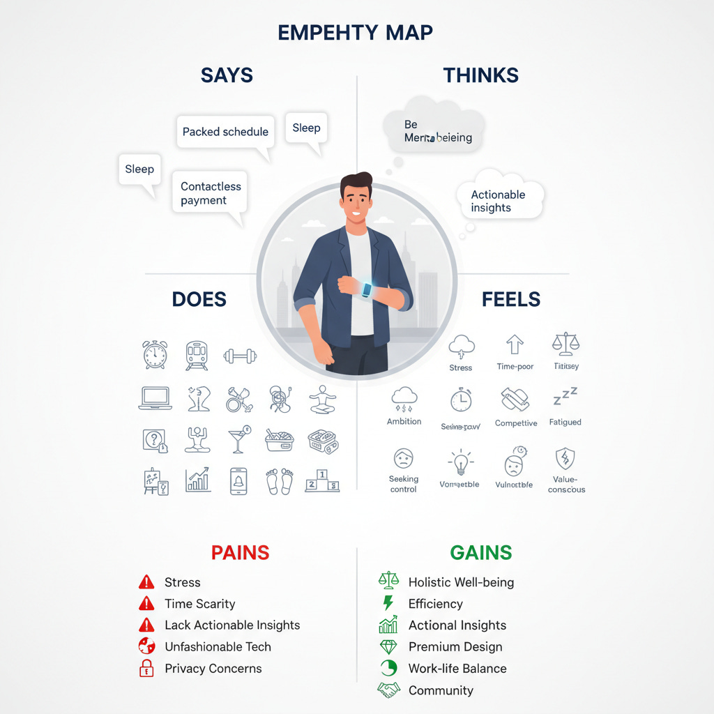 The difference between this and the Opal above is that this one has the capability to search the web, and the user needs to provide input in 2 steps. It also takes as an input raw user interview transcripts. For this example, my input was: user segment and use case, so I typed: “Young professional in new york, smart wristband”, here is the output: